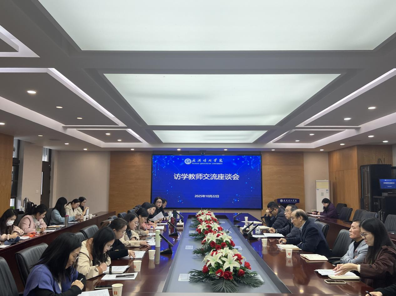 为进一步加强师资队伍建设,提升教师访学工作的实际成效,2025年10月22日下午,学校在综一四楼会议室召开访学教师交流座谈会。副校长彭宇文教授、计算机学院黄传河院长、会计学院唐建新院长、设计工程学院楚东晓院长、商学院薛红松院长,学校2024年和2025年访学教师参加会议。教师发展中心负责人张黎主任主持会议。