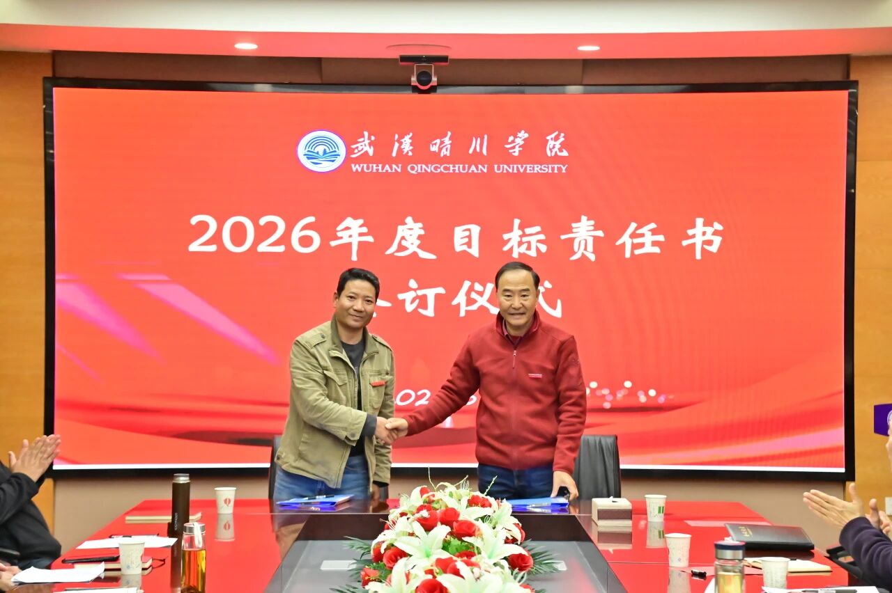 锚定目标启新程,乘势而上谱新篇。3月30日下午,武汉晴川学院2026年度目标责任书签订仪式顺利举行。董事长、校长汪彬教授出席并讲话,全体校领导、各二级学院(课部)院长(主任)、各职能部门负责人参加。仪式由副校长彭宇文主持。